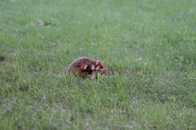 im Bau nicht ebenfalls ein Männchen ist - denn es hat eine sehr große Verletzung an der Schnauze, die wahrscheinlich von einem Kampf stammt. Und an Weibchen habe ich bisher keine großen Kampfverletzungen beobachtet. Leider kam das Tier nicht aus dem Bau heraus, sodaß das Spekulation bleibt.